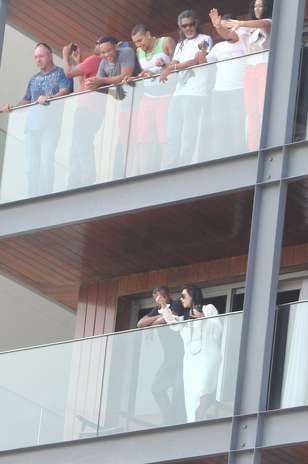 RJ: Smith, Kardashian e West interagem na sacada de hotel