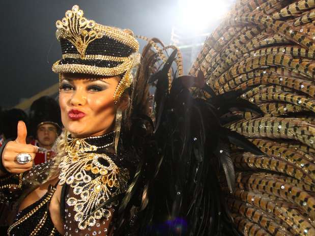 Andressa Urach exibe barriga estranha durante ensaio de escola de samba